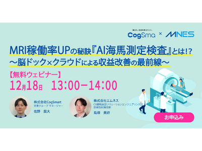 クラウド型医療情報管理共有システム「LOOKREC (※1)」を提供する株式会社エムネス(所在地:広島県広島市、代表取締役社長:阿部 伸一)は、「MRI稼働率UPの秘訣『AI海馬測定検査』とは!?~脳ドック×クラウドによる収益改善の最前線」セミナーを、2025年12月18日(木)に開催いたします。