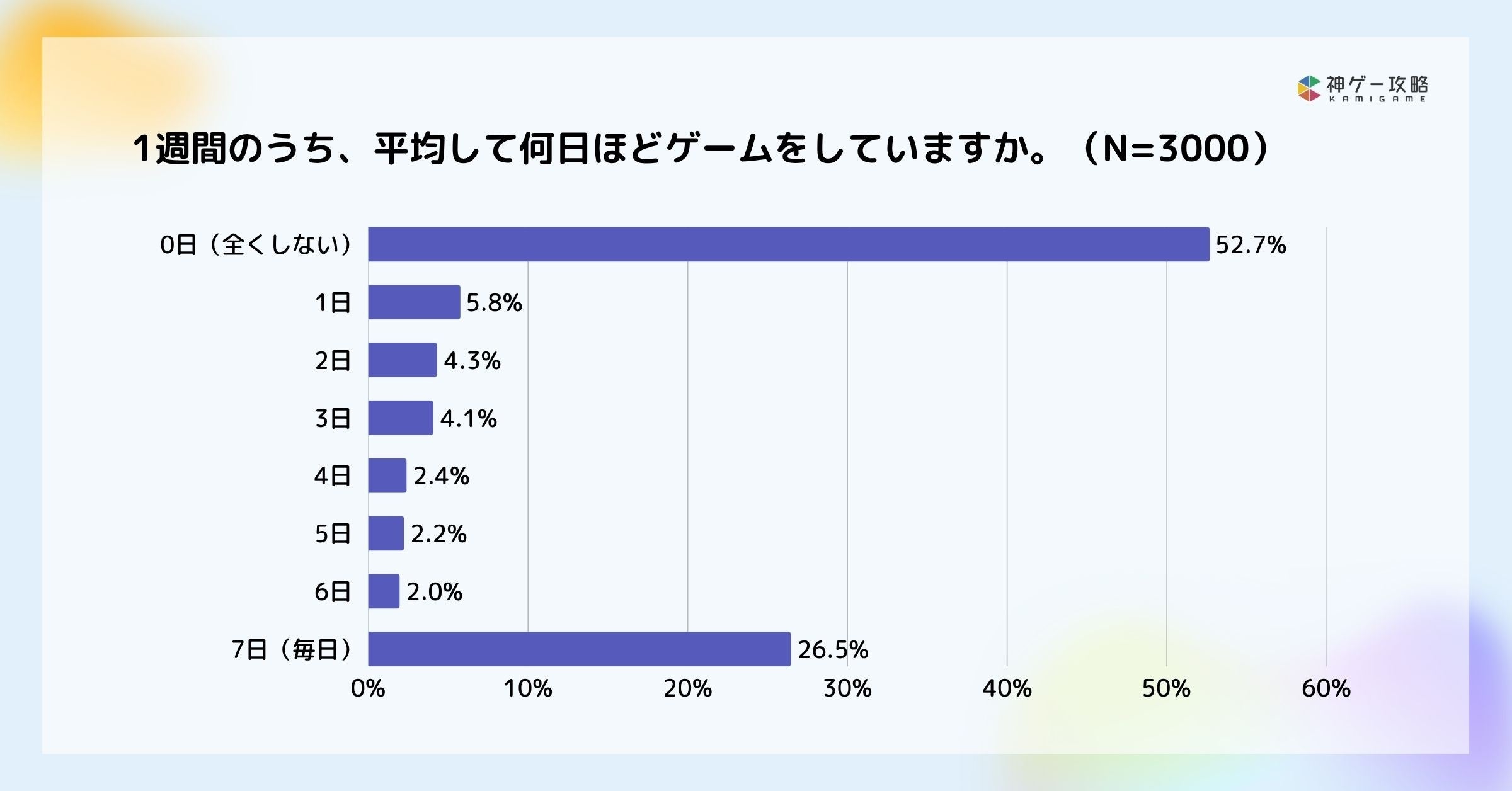 1週間のゲームプレイ日数は7日(毎日)が過半数以上