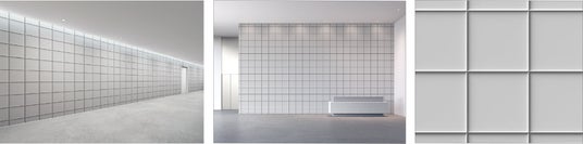 凹凸を感じる立体的なパターンは大小異なるサイズをご用意。空間の広がりに合わせて選択いただけるほか、壁面に合わせたサイズ変更も対応いたします。
