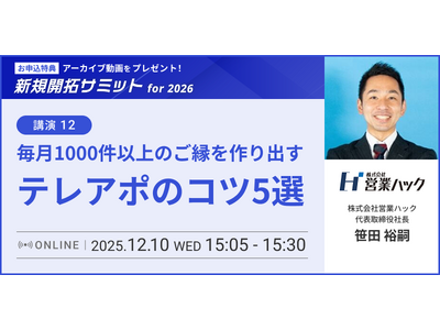 本サミットでは、営業とマーケティングの垣根を越えて、新規開拓を加速させる“実践トレンド“を徹底解剖。リード獲得・商談創出・受注獲得まで、成果を出し続ける企業の“既存施策を進化させるアイデア“を各社が余すことなく共有します。