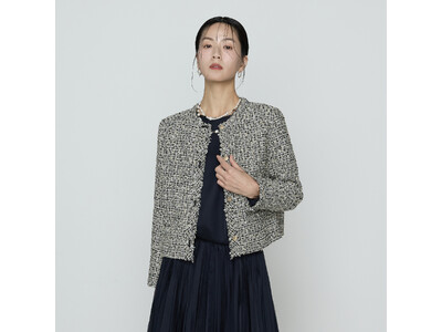尾州(愛知県一宮市)でオリジナルでつくる“セレモニーツイード”を使用したノーカラージャケットが登場します。4種の意匠糸を贅沢に織り合わせ、品格を感じさせる表情が魅力です。