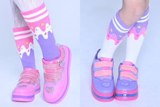 同時発売のコラボソックスは、星やハートモチーフ、「Shinako(ハート)」ロゴなどを配したデザインで、シューズとのセットコーデにぴったり。後ろ姿までキュートに決まるアイテムです。