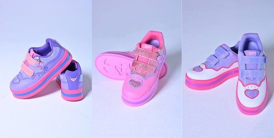 本コラボモデルは、トレンドに敏感な女子小中学生に向けたキッズブランド「NUOVOgirl」と、カラフルでハッピーな世界観で支持を集めるしなこちゃんがタッグを組んだスペシャルモデル「光ってかがやく!475スニーカー(ハート)」です。