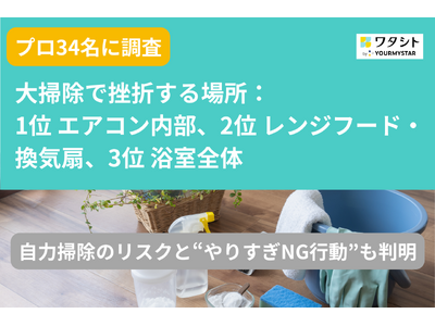 ハウスクリーニングやリペア、施設メンテナンス産業のIT化プラットフォーム「ユアマイスター」を展開するユアマイスター株式会社(本社:東京都世田谷区、代表取締役社長:星野貴之)は、運営メディア「ワタシト」にて、ハウスクリーニングのプロ34名に大掃除に関するアンケートを実施しました。