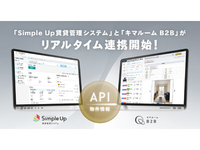 株式会社キマルーム(本社:東京都千代田区、代表取締役社長:藤井 志郎、以下「当社」)が提供する業者間流通サービス「キマルーム B2B」と、ユニコム株式会社(本社:埼玉県入間市、代表取締役:町田 達彦、以下「ユニコム」)が不動産管理会社向けに提供している「Simple Up賃貸管理システム」が2025年12月よりリアルタイム連携を開始します。今回の連携により「Simple Up賃貸管理システム」を利用している管理会社様の物件情報はリアルタイムで「キマルーム B2B」と連携されることとなり、管理会社、仲介会社双方の空室募集の業務効率を大幅に向上させることが可能になります。