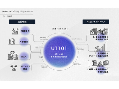 事業領域の拡大とグループ会社の増加を背景に、事業間連携およびクロスセルを強化し、今後5年間で”101名の事業責任者”の創出する中期成長戦略「UT101」を始動します。