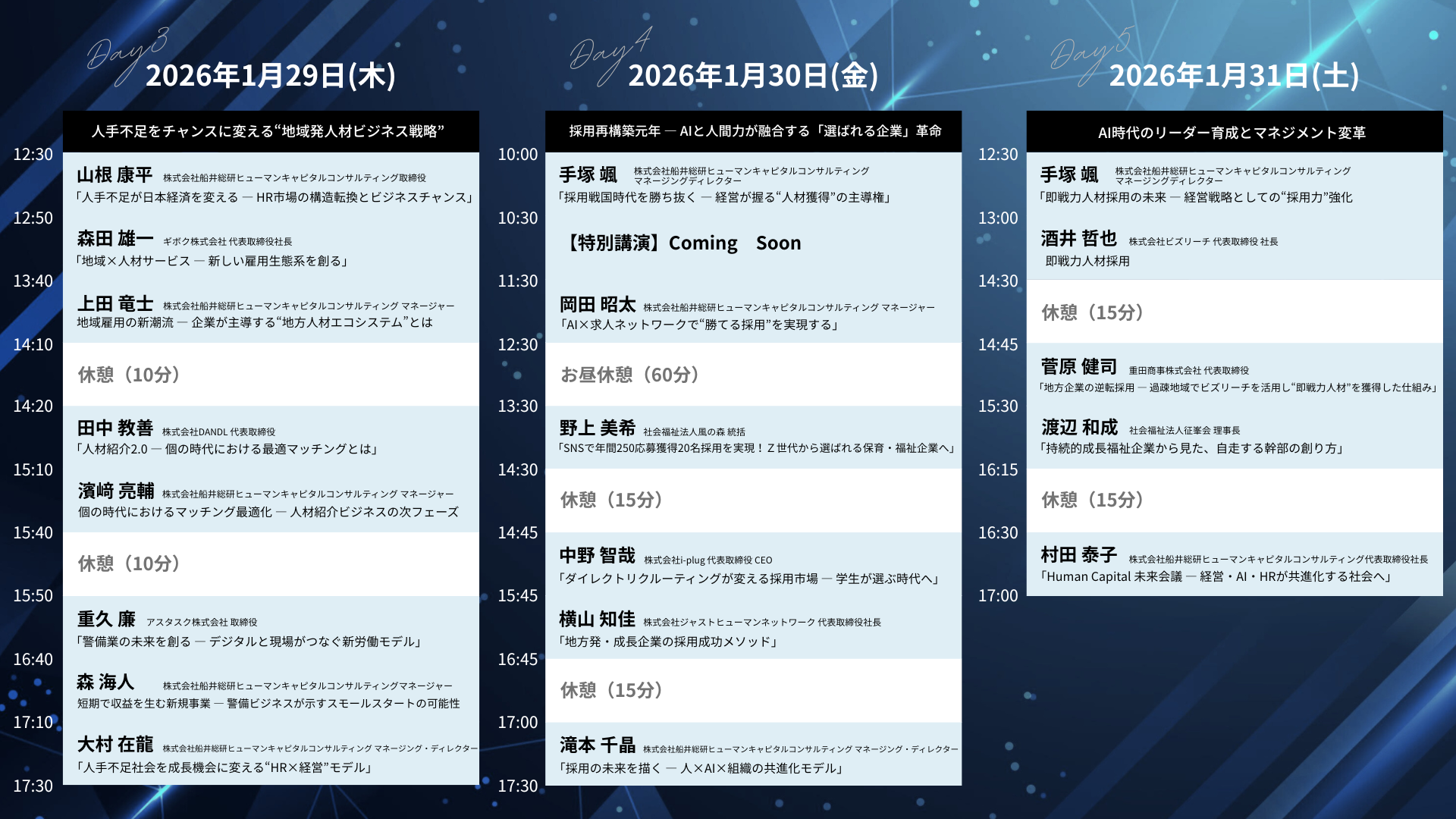 開催日:2026年1月26日(月)/ 27日(火) / 29日(水)/ 30日(木)/ 31日(土)