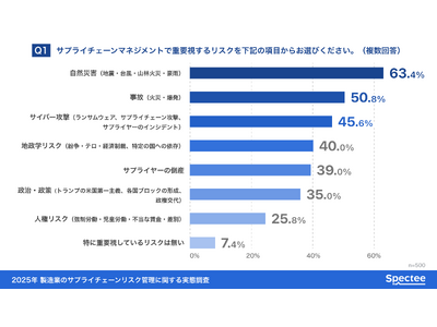 レジリエンス領域でDXを推進する株式会社Spectee(本社:東京都千代田区、代表取締役:村上 建治郎、以下 Spectee)は、製造業にお勤めの経営層とサプライチェーンに携わる業務担当者(合計500名)を対象に、「サプライチェーンリスク管理に関する実態調査」を実施しました。