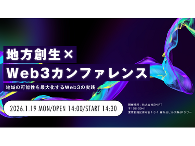キリフダ株式会社(本社:東京都中央区、代表取締役社長:赤川 英之、以下「キリフダ」)と株式会社SHIFT(本社:東京都港区、代表取締役社長:丹下 大、以下「SHIFT」)は、2026年1月19日(月)に地方創生におけるWeb3活用の可能性と課題を深掘りするリアルイベント「地方創生 × Web3カンファレンス:地域の可能性を最大化するWeb3の実践」を開催いたします。本日より、本イベントの事前申し込み受付を開始いたしました。