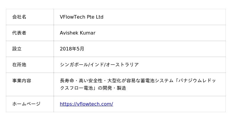 バナジウムレドックスフロー電池を開発するVFlowTech社への出資を決定