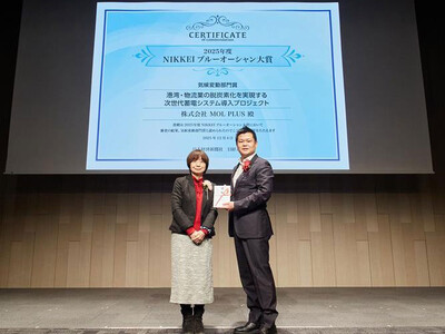 株式会社商船三井(社長:橋本 剛、本社:東京都港区、以下「当社」)の100%子会社CVC(コーポレートベンチャーキャピタル)である株式会社MOL PLUS(代表:阪本 拓也、本社:東京都港区、以下「MOL PLUS」)は、2025年度NIKKEIブルーオーシャン大賞(註1)の「気候変動部門」をグループとして初めて受賞しました。本賞は、気候変動対策の具体的な取り組みを表彰するもので、MOL PLUSはシンガポールに本社を置く投資先スタートアップ企業VFlowTech(読み:ブイフローテック 註2)社と取り組んでいる「港湾・物流業の脱炭素化を実現する次世代蓄電システム導入プロジェクト」(以下「本プロジェクト」註3)により受賞しました。