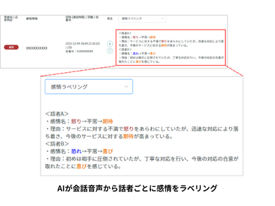 本アップデートにより、テキスト化された文字情報だけでは読み取れなかった声のトーンや抑揚、間といった「非言語情報」による感情分析が可能となり、相手の温度感を把握することで、顧客対応のさらなる品質向上や従業員満足度(ES)向上を支援します。
