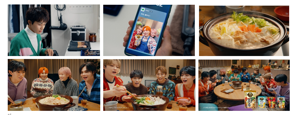 本コラボキャンペーンでは、共同生活を送る超特急のメンバーが「〆鍋」を囲みながら、いつまでも会話が尽きない様子を描いています。「〆鍋」を囲むことで生まれる、心までほぐれるあたたかな時間を、皆さまのもとへお届けします。