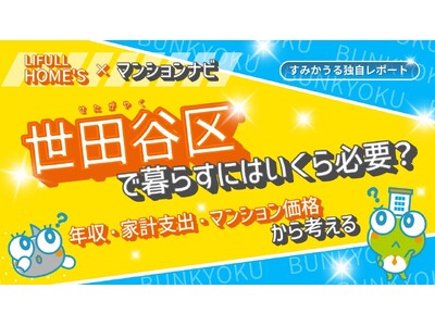 マンションリサーチ株式会社(本社所在地:東京都千代田区神田美土代町5-2、代表取締役社長:山田力) は、マンション市場の長期的な変化を把握するため、全国14万3,000棟のマンションデータを公開している「マンションナビ」 の保有データを用いて、世田谷区の世帯年収や家計支出、マンション価格相場をもとにした最新レポートを公開しました。