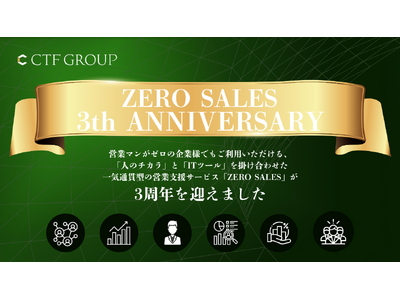 株式会社CTF GROUP(本社:東京都港区、代表取締役社長:山本真聖)が提供する在宅型営業支援サービス「ZERO SALES(ゼロセールス)」は、2025年12月で正式提供開始から3周年を迎えます。営業マンが0(ゼロ)の会社でも利用できる「人のチカラ」と「ITツール」を掛け合わせた営業支援サービスとして、営業人材不足や人件費の高騰に悩む中小企業を中心に導入が進んできました。