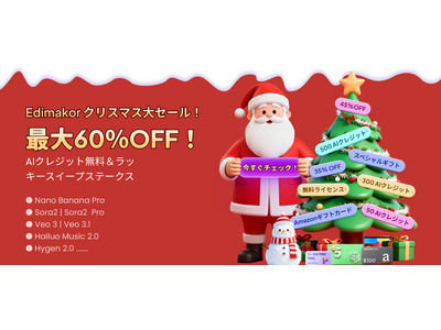 SNS動画やクリスマスの記念コンテンツを作りたい方、AIでクリエイティブ制作に挑戦したい方に最適なキャンペーンとなっています。