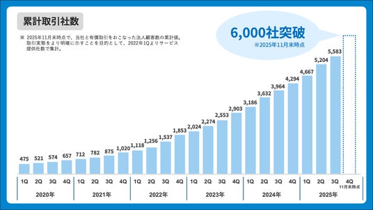 ※1 2025年11月末時点で、当社と有償取引をおこなった法人顧客数の累計値。取引実態をより明確に示すことを目的として、2022年第1四半期よりサービス提供社数で集計。