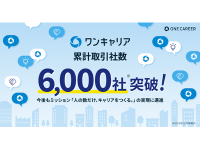 キャリアデータプラットフォーム事業を運営する株式会社ワンキャリア(本社:東京都渋谷区、代表取締役社長 執行役員CEO:宮下 尚之、以下「ワンキャリア」)は、2025年11月末時点で、創業以来の累計取引社数が6,000社[※1]を突破しました。