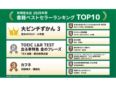 株式会社有隣堂(本社:神奈川県横浜市 代表取締役社長:松信健太郎)は、2025年の販売実績に基づいた1年間を振り返る年間ベストセラーランキングを発表いたします。