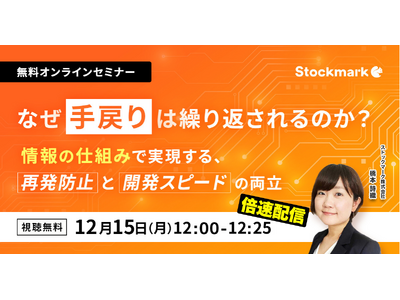 製造業向けAIエージェント『Aconnect』を提供するストックマーク株式会社(以下、「当社」)はオンラインセミナー『25分で学べる!技術者の時間を奪う“手戻り”を断つ 情報の仕組みで実現する、再発防止と開発スピードの両立』を12月15日(月) に開催致します。