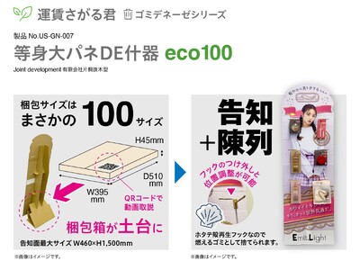 販促業界のSDGs推進組織 『SPGs(サステナブル プロモーション ゴールズ)』(https://spgs-hankue.com/)は、環境配慮型販促物 「運賃さがる君/ゴミデネーゼシリーズ」のラインアップとして新製品「等身大パネDE什器 eco100」の販売を開始しました。