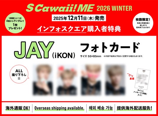 各アーティストのサイン入りチェキプレゼントは『S Cawaii! ME 2026 WINTER』の誌面についている綴じ込みハガキでご応募ください。
