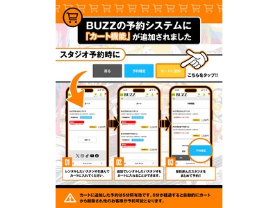 全国84店舗以上、会員数20万人超、月間利用者数25万人以上を誇るレンタルダンススタジオ「STUDIO BUZZ」を運営する株式会社BUZZ GROUP(本社:東京都港区、代表取締役:渡辺 憲)は、複数の予約をまとめて確定・決済できる新機能「カート機能」を正式リリースいたしました。