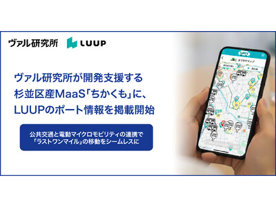株式会社ヴァル研究所(本社:東京都杉並区、代表取締役:菊池 宗史、以下:ヴァル研究所)と、電動マイクロモビリティのシェアリングサービス「LUUP」を運営する株式会社Luup(本社:東京都品川区、代表取締役CEO:岡井 大輝、以下:Luup)は、ヴァル研究所が開発支援を行う杉並区産MaaS「ちかくも」において「LUUP」のポート情報を連携し、12月18日(木)より掲載を開始することをお知らせします。