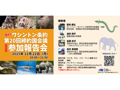 2025年12月22日20:00- 認定NPO法人野生生物保全論研究会によるワシントン条約参加報告会を開催します