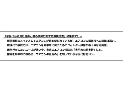 子世代から見た自身と親の暖房に関する意識調査結果サマリー
