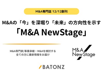 M&A・事業承継支援プラットフォーム「BATONZ(バトンズ)」を運営する株式会社バトンズ(本社:東京都中央区、代表取締役CEO:神瀬悠一、以下バトンズ)は、2025年12月12日(金)にM&A専門誌「M&A NewStage」を創刊することをお知らせします。