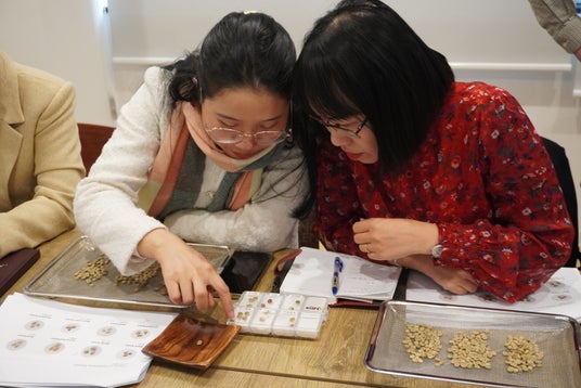 BYSNのコーヒー豆のハンドピック体験の様子