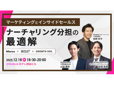 株式会社XAION DATA(本社:東京都千代田区、代表取締役:佐藤 泰秀)の運営するセールスインテリジェンスSaaS「AUTOBOOST(オートブースト)」は、株式会社Maroo(本社:東京都渋谷区、代表取締役社長:山梨 寛弥)、株式会社グロースソイル(本社:東京都新宿区、代表取締役:岩野 航平)との3社共催セミナー「マーケティングとインサイドセールス ナーチャリング分担の最適解」を開催いたします。
