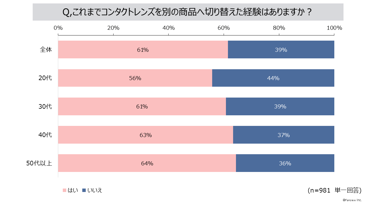 使用するコンタクトレンズを別の商品に切り替えた経験がある61%