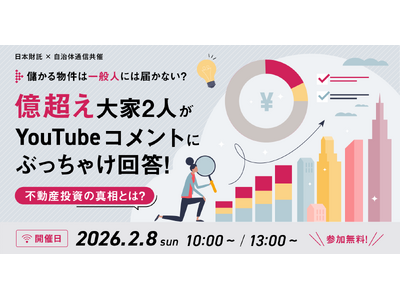 イシン株式会社(本社:東京都港区、代表取締役社長:西中 大史、証券コード:143A)が運営する公民共創の先進事例を紹介するメディア『自治体通信』は、2026年2月8日(日)に日本財託×自治体通信共催セミナー「【年収500万円以上の公務員にオススメ!】儲かる投資物件は一般人には届かない?億超え大家2人がYouTubeコメントにぶっちゃけ回答!不動産投資の真相とは?」を開催いたします。