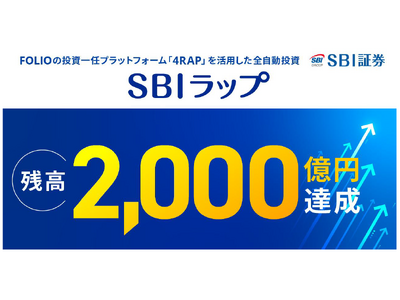 株式会社SBI証券(本社:東京都港区、代表取締役社長:高村正人、以下「当社」)は、株式会社FOLIOを運用会社とする投資一任サービス「SBIラップ」が2022年3月31日(木)のサービス提供開始から3年8ヵ月あまりで、残高2,000億円を突破しましたのでお知らせします。