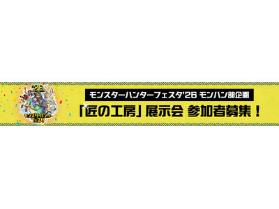モンスターハンターフェスタ’26会場内で開催される、モンハンオンリー創作展示会 「匠の工房」 に出展するクリエイターを大募集! 特設エリアで、あなたの作品をハンター仲間に届けるチャンスです。