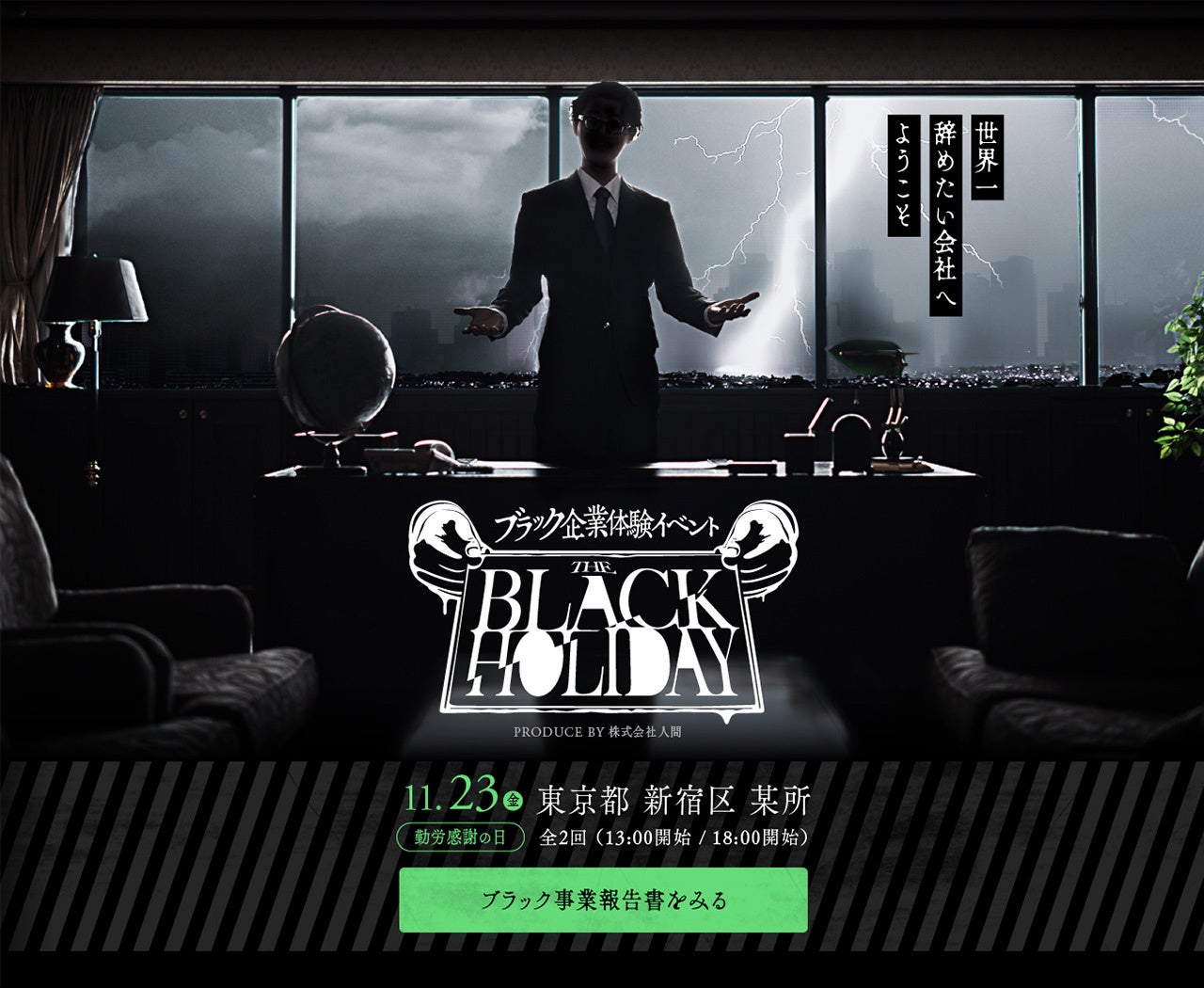 ブラック企業体験イベント「THE BLACK HOLIDAY」2018年11月23日の勤労感謝の日、「ブラック企業体験イベント THE BLACK HOLIDAY」を東京都新宿区某所にて開催しました。
