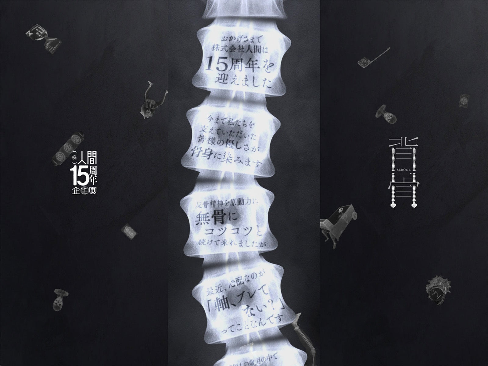 株式会社人間(所在地:大阪府大阪市西区京町堀1-12-11 愛晃ビル4F/代表取締役:花岡・山根シボル)は、2025年11月11日に設立15周年を迎えたことを記念し、『株式会社人間15周年企画 背骨』の特設サイトを公開しました。