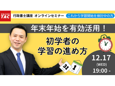 行政書士試験対策講座を展開しているTAC株式会社(東京都千代田区、代表取締役:多田敏男)は、これから行政書士試験の学習を開始しようと検討中の方を対象に、無料オンラインセミナーを12/17(水)に開催します。