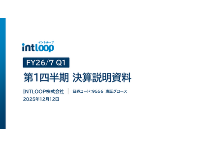 INTLOOP株式会社(本社:東京都港区、代表取締役:林 博文、証券コード:9556、以下「INTLOOP」)は、本日12月12日(金)に2026年7月期 第1四半期決算を発表いたしました。