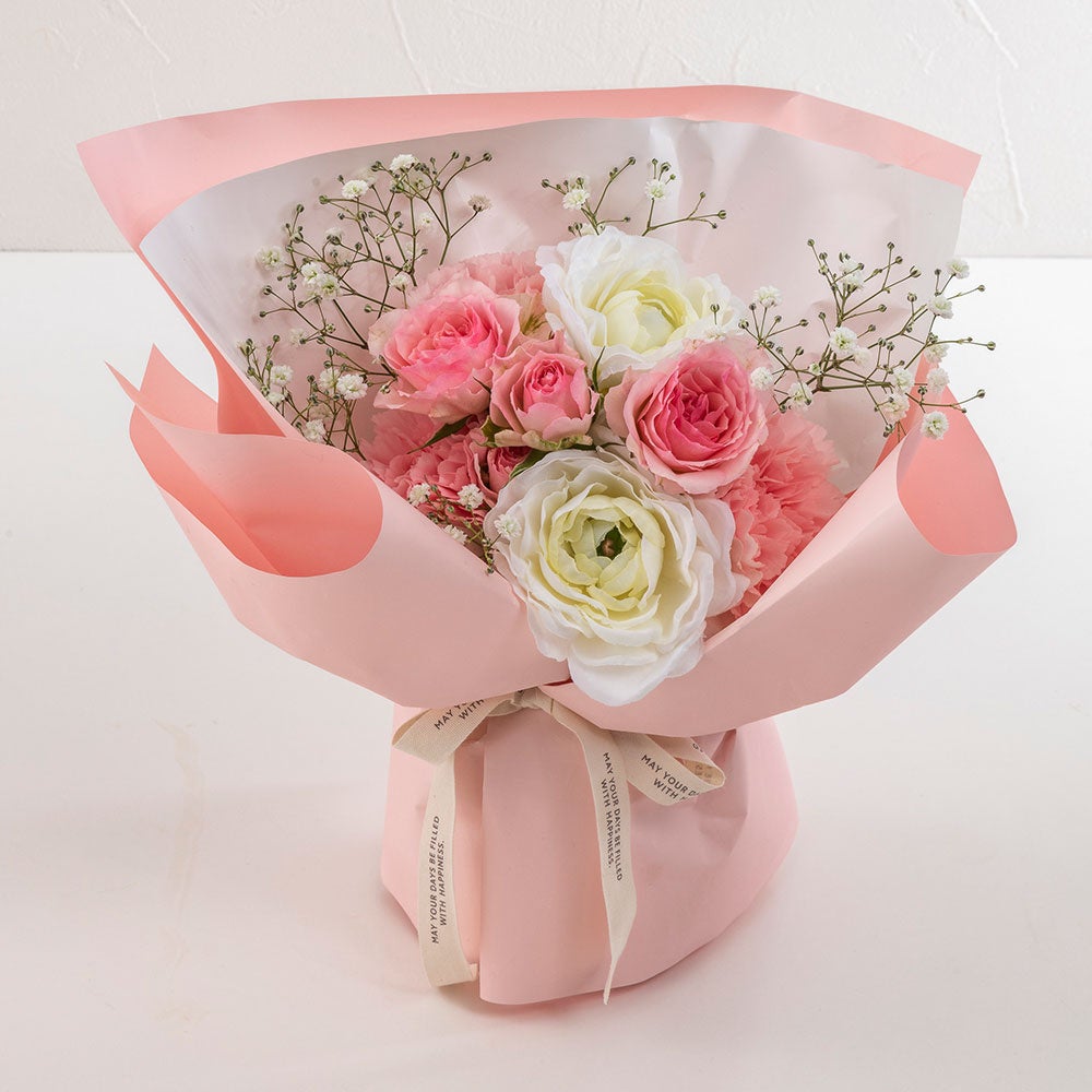 フレッシュな生花でありながら、水替え不要で手間いらず。花瓶の心配なく、受け取ってすぐに飾れるので気兼ねなく贈れます。可愛らしいラッピングをそのまま活かして。新成人の新しい生活を明るく彩る門出にぴったりの贈り物です。