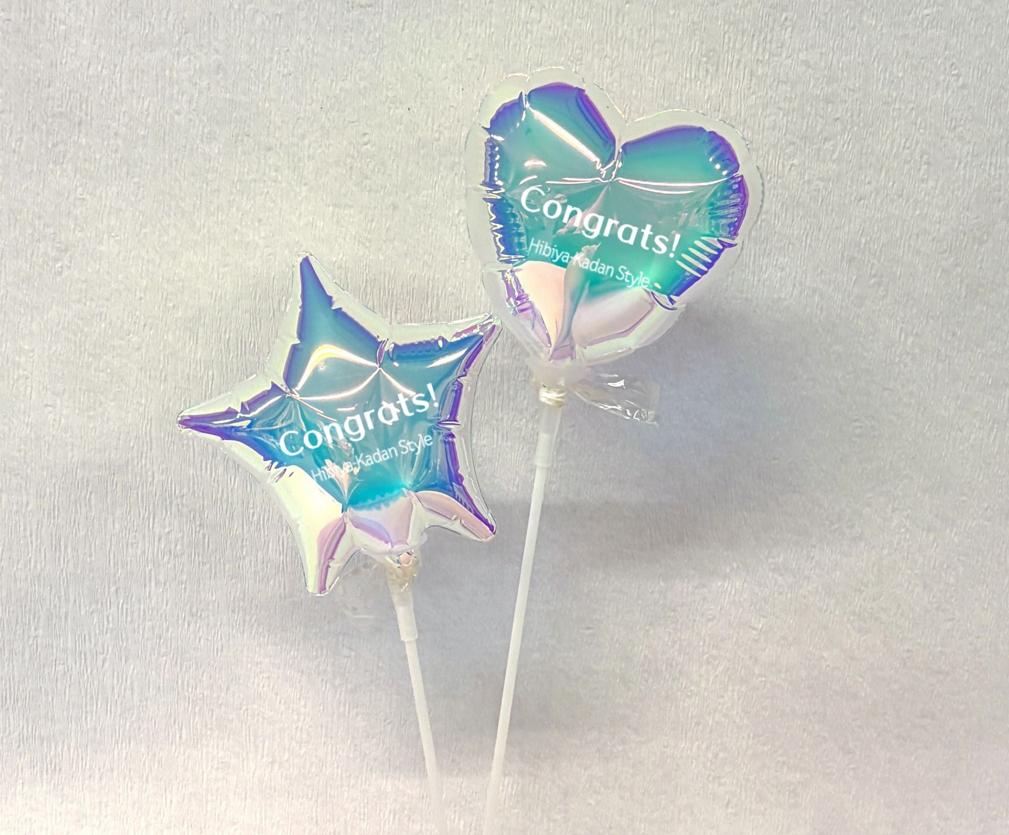 「Congrats!」のメッセージ入りオーロラカラーバルーン