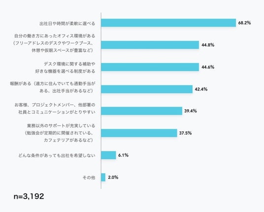 ・出社してもよいと思うのは、出社日や時間を柔軟に選べるとき