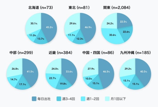 ・関東のITエンジニアは週2回以下の出社、他地域では週3回以上が大半