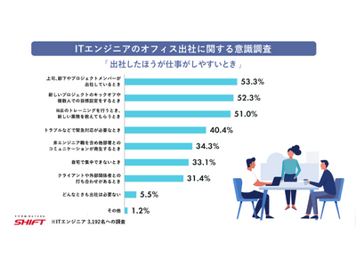 SHIFTは、ITエンジニアのよりよいキャリア形成の支援を目的として、全国のITエンジニアを対象に「ITエンジニアのオフィス出社に関する意識調査」を10月20日から11月4日まで実施しました。