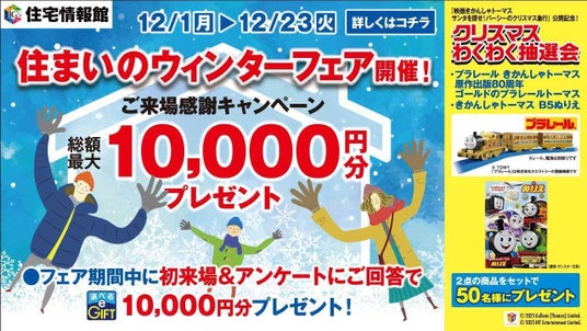 住宅情報館では「住まいのウィンターフェア」を開催中。フェアに合わせて子どもから大人まで大人気の『映画 きかんしゃトーマス サンタをさがせ!パーシーのクリスマス急行』との公開記念キャンペーン企画を実施しています。