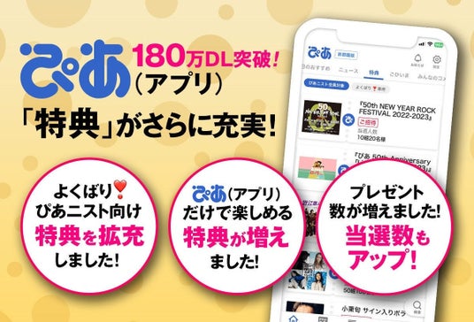 「ぴあ」アプリは累計180万DLを突破。プレミアムな読者特典も続々追加中!!