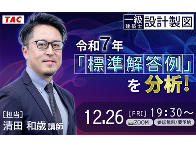 簿記検定試験、税理士、公認会計士などの資格取得に向けた教育サービスを展開しているTAC株式会社(東京都千代田区、代表取締役:多田 敏男)は、2025年12月26日(金) 19:30より、オンラインで一級建築士(設計製図)令和7年「標準解答例」を分析セミナーを開催します。