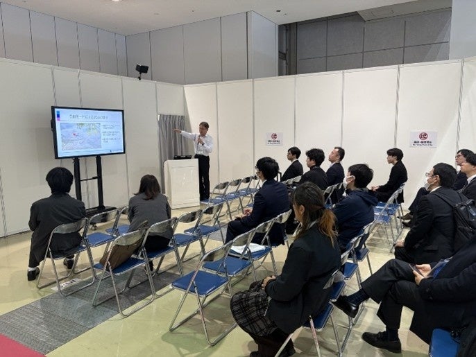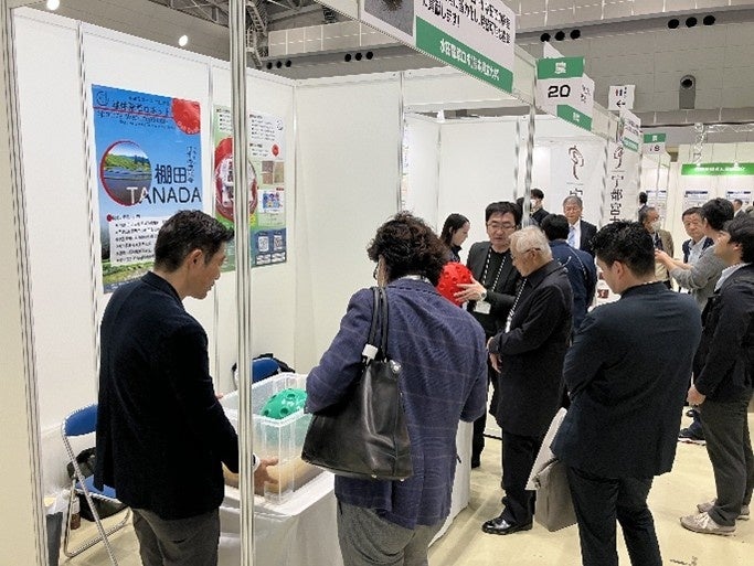 27日(木)には熊本高専機械知能システム工学科の湯治準一郎教授が出展者プレゼンを行い、球体ロボットの仕組みから除草効果までの成果を説明しました。ブースでは、水槽を用いて球体ロボのデモを行い、ロボットの構造や動き方について説明しました。3日間通して200名以上の多くの来場者が訪れ、珍しい球体除草ロボットに興味を示していました。来場者からは、「早く使いたい」、「他の用途にも使えるのではないか」といった意見が聞かれました。